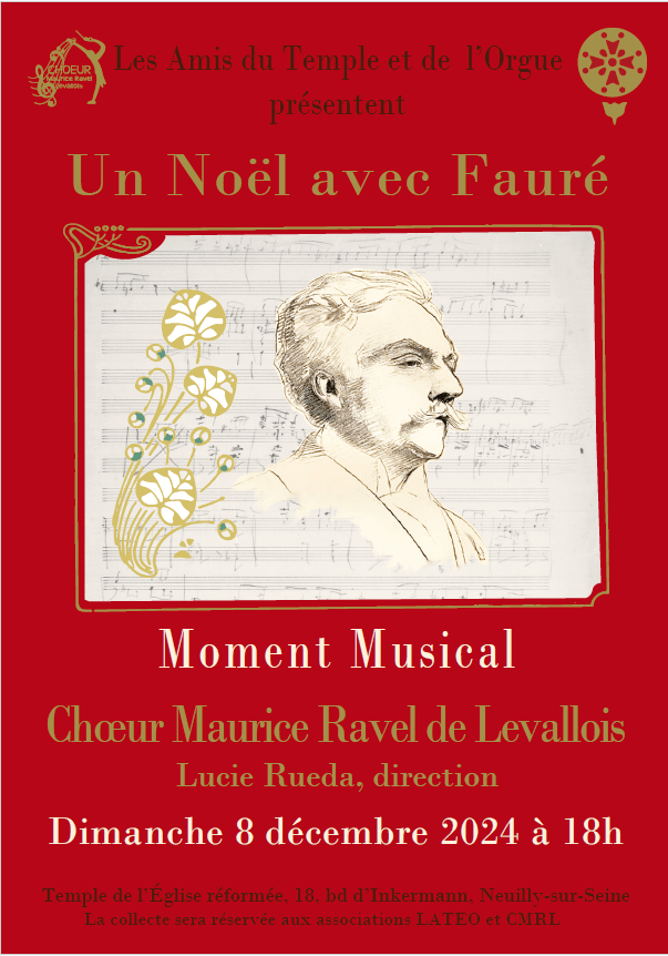 Pour Noël 2024, nous avions repris des extraits de différentes oeuvres de Gabriel FAURE, au profit de 2 résidences de personnes âgées de Levallois : Le Jardin et la Résidence Greffuhle.
